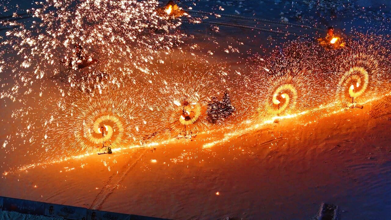 开幕式当晚,跨年活动将节日氛围推向高潮。自16时30分起,电音律动、摇滚酣唱、互动游戏接连登场,千年非遗绝技“打铁花”率先点亮苍穹,铁水泼洒如星雨纷落,绘就一幅“火树银花不夜天”的壮丽画卷。20时整,开幕式在烟花、极光与漫天花雪中正式启动,祥瑞“鳌鱼”凌空巡游,与激昂舞姿交织成梦幻场景。