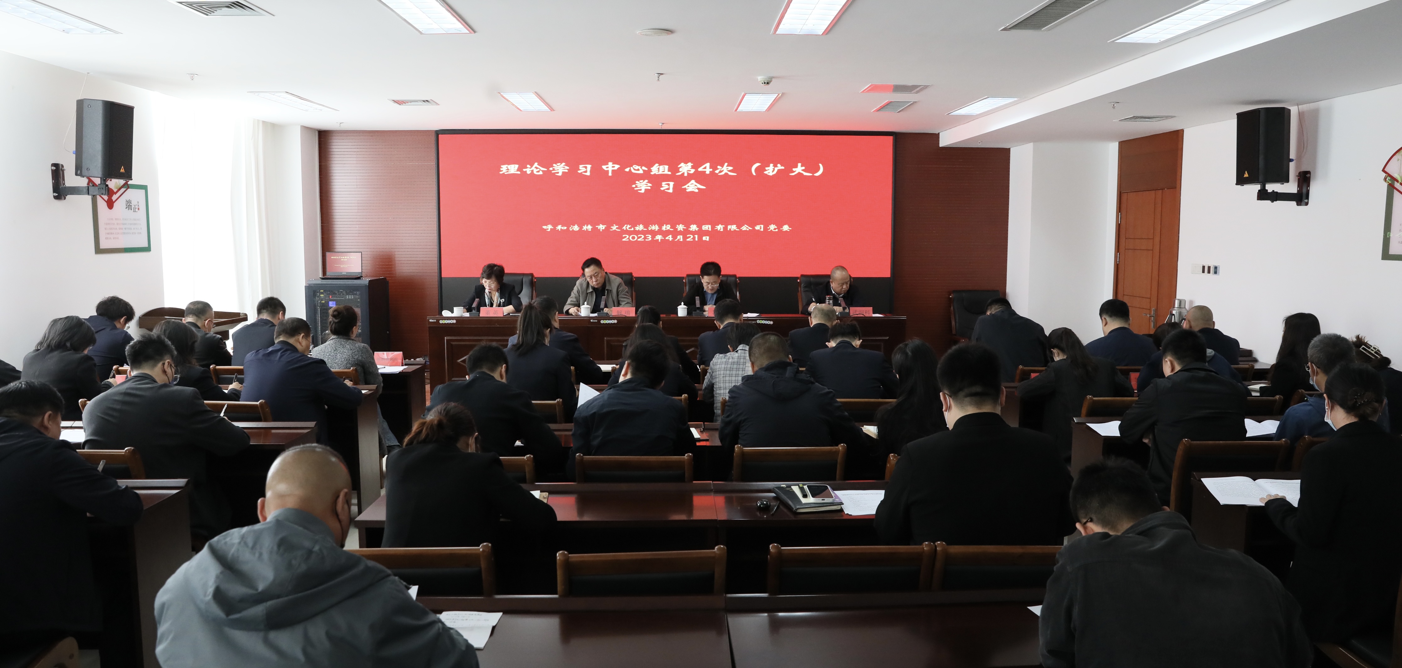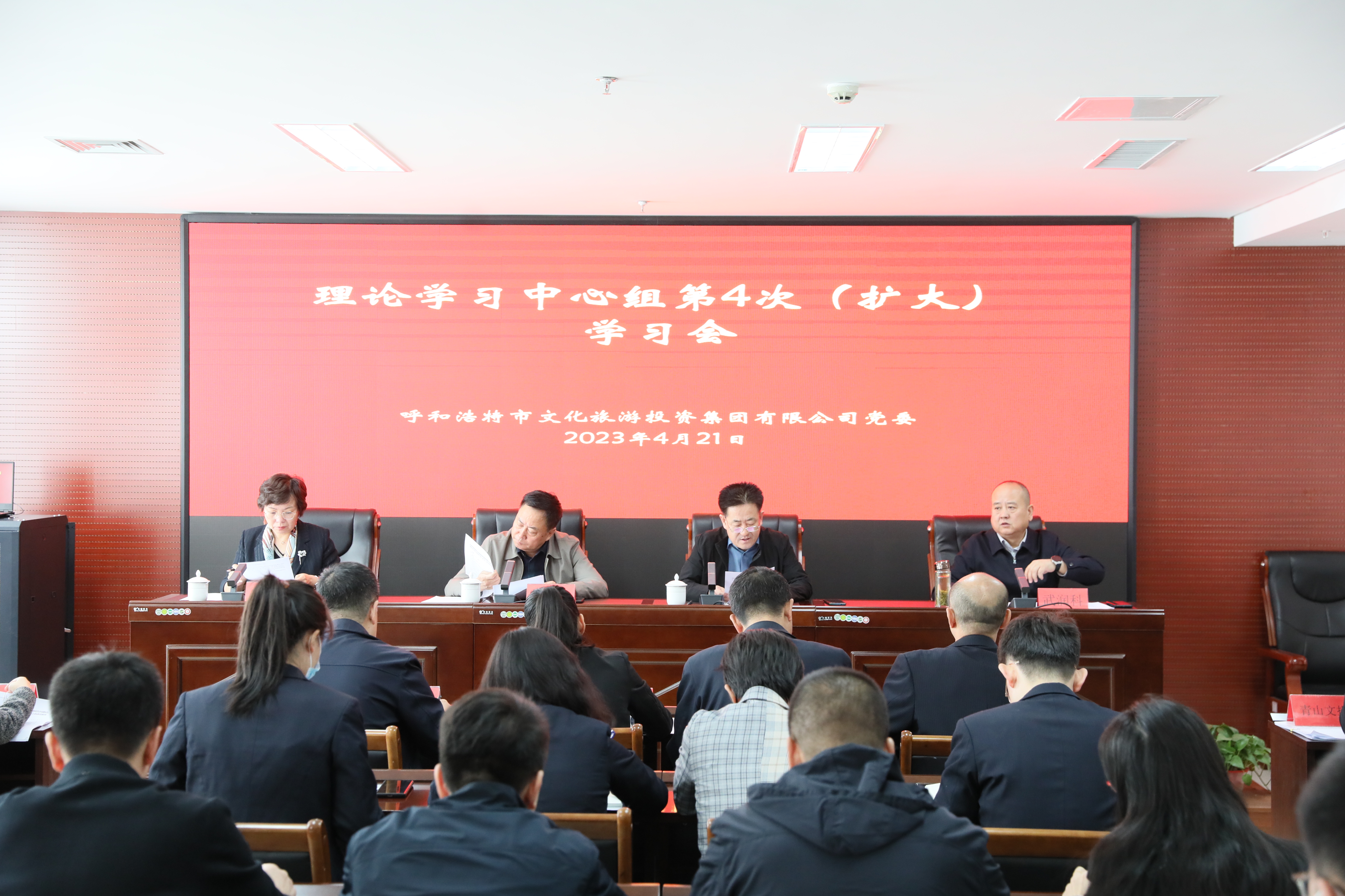 4月21日上午,呼和浩特市文旅投集团党委召开2023年理论学习中心组第4次(扩大)学习会,集团党委副书记冯德主持会议。