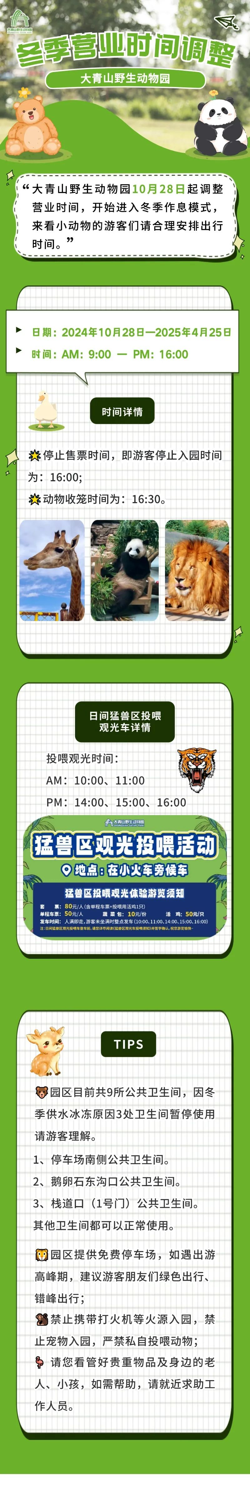 通知丨大青山野生动物园冬季营业时间调整